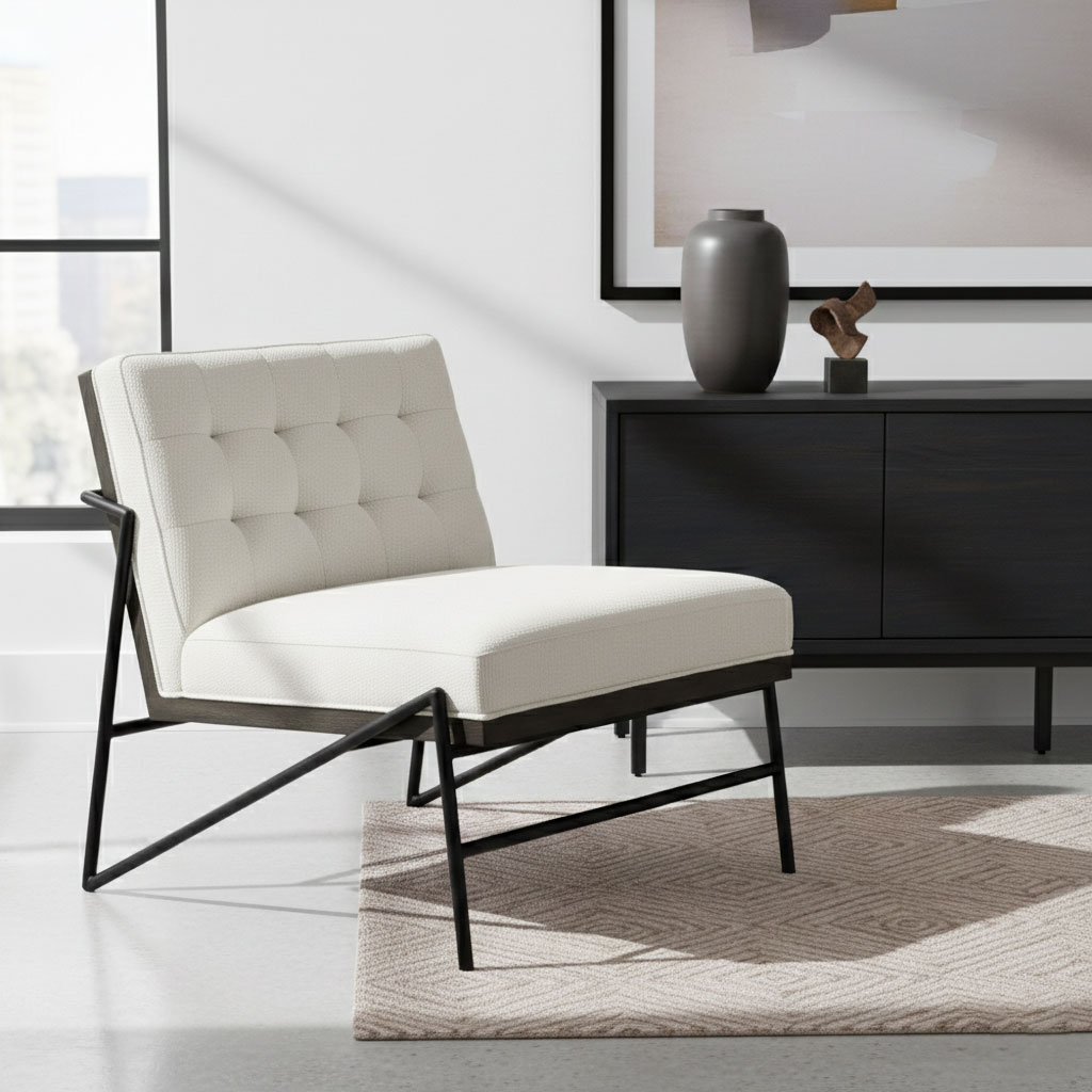 Modern Tufted Lounge Chair | Industrial Minimalist Armchair