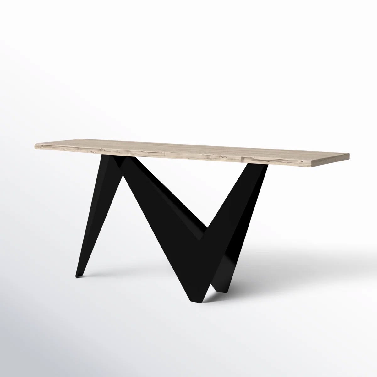 Elevate your home’s aesthetic with the Tarandus Console, a stunning fusion of raw natural beauty and sharp, contemporary design. Crafted for those who demand excellence in their interior decor, this console table serves as a perfect focal point for entryways, hallways, or living rooms. The centerpiece of this design is its unique “V” shaped MS Metal frame base, providing a bold architectural statement that supports a premium solid wood top.