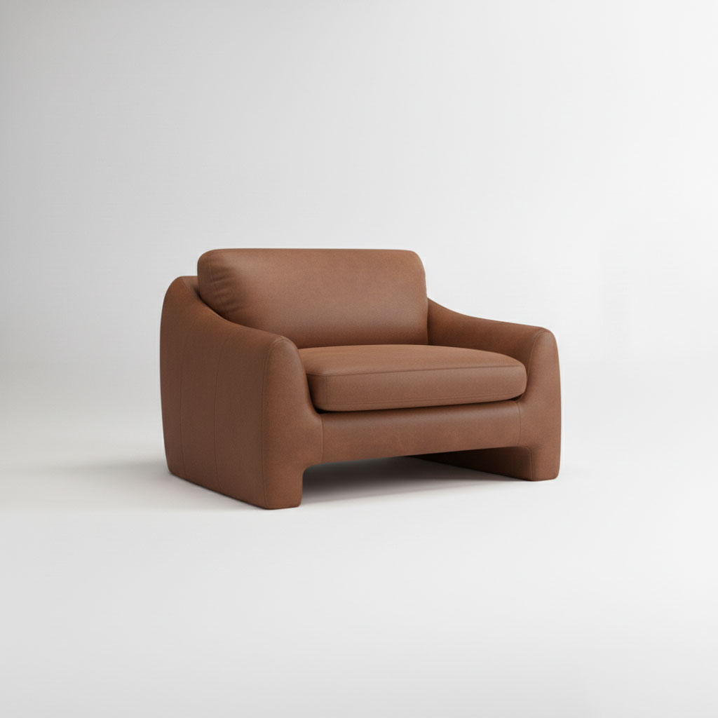 Transform your living space with The Arlo, a masterpiece of modern minimalism and ultimate comfort. Designed for those who appreciate the finer things, this single-seater armchair blends a sleek, architectural silhouette with the rugged elegance of premium brown leather.